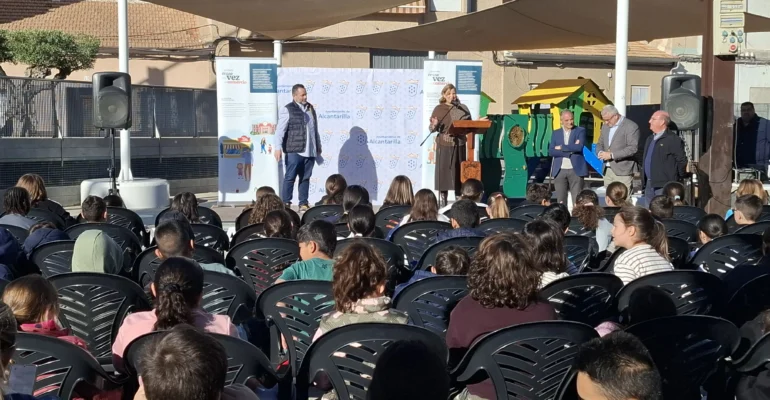 Un total de 225 alumnos de 5º y 6º de Primaria de los CEIP Jara Carrillo, Las Tejeras y Jacinto Benavente han participado hoy en la celebración del ‘Día del Comercio Local en Alcantarilla’, que organiza la Dirección General de Impulso al Comercio, Innovación Empresarial e Industrias y Oficios Artesanos en la Plaza Adolfo Suárez.