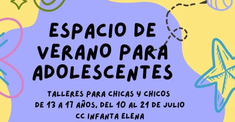 Se trata del Espacio de Verano para Adolescentes (EVA), del 10 al 21 de julio en el Centro Cultural Infanta Elena, donde se van a impartir talleres gratuitos de teatro, arte, inglés para canciones, arreglo de bicicletas, filosofía y psicología, cobre todo de herramientas de inteligencia emocional, autoestima y relajación y, como novedad un taller sobre educación medioambiental marina, impartido por especialistas en biodiversidad marina.