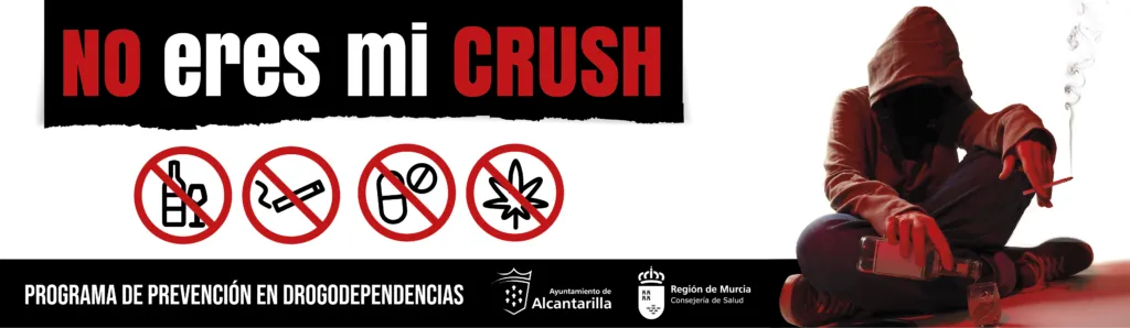 - Campaña de Prevención en Drogodependencias, “No Eres mi Crush”, realizada por el Ayto. de Alcantarilla, con la colaboración de la Consejería de Salud, D.G. de Salud Pública y Adicciones de la R.M., dirigida a población en general, y especialmente, a la población joven del municipio.
