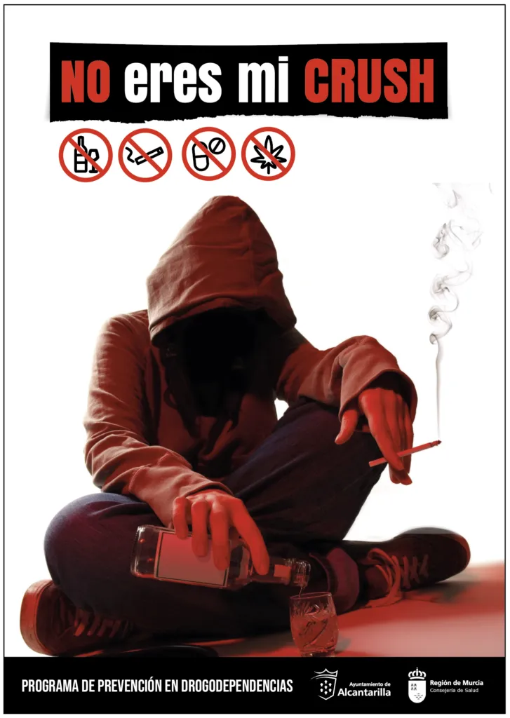 - Campaña de Prevención en Drogodependencias, “No Eres mi Crush”, realizada por el Ayto. de Alcantarilla, con la colaboración de la Consejería de Salud, D.G. de Salud Pública y Adicciones de la R.M., dirigida a población en general, y especialmente, a la población joven del municipio.