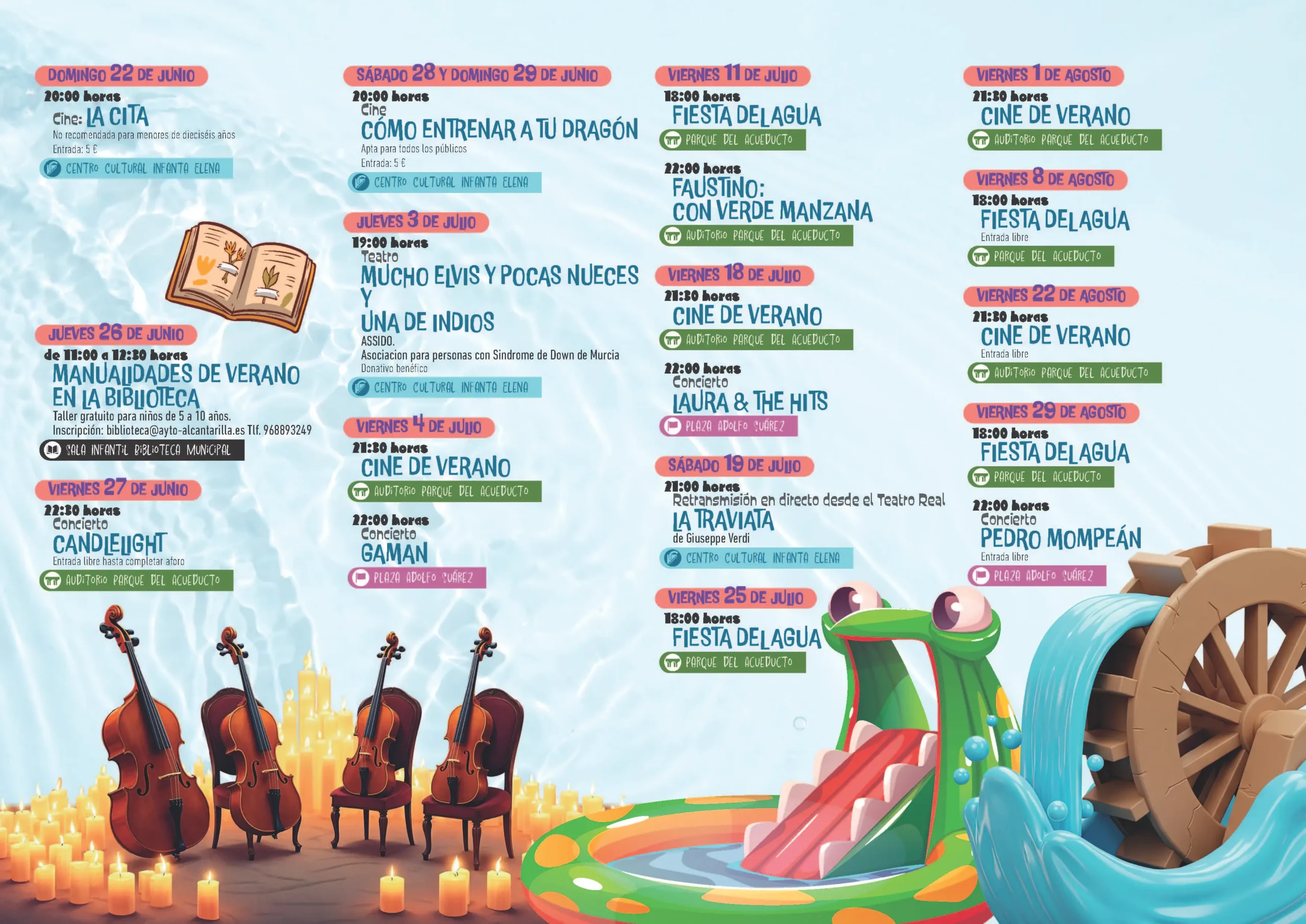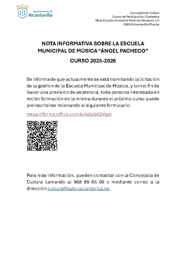 El Área de Cultura desarrolla una gestión de las diversas manifestaciones culturales, basada en el apoyo, en el estímulo y en la colaboración, actuando decididamente para dotar de las infraestructuras necesarias a un municipio que quiere convertirse en un referente en este ámbito. Porque la idea de futuro es que Alcantarilla acoja, de manera habitual, actividades relacionadas con las artes, las letras, la danza, el teatro y la música, entre otras manifestaciones culturales.