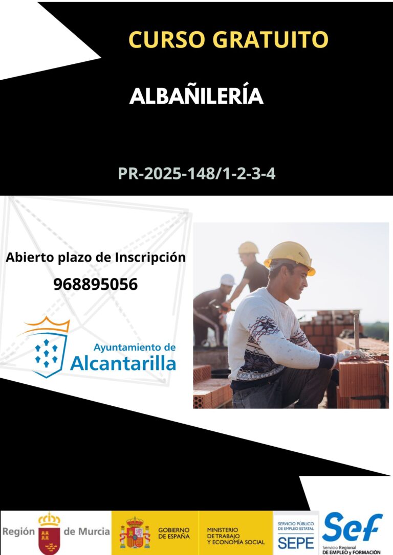 Lugar de impartición: AGENCIA DE DESARROLLO LOCAL DEL AYUNTAMIENTO DE ALCANTARILLA.