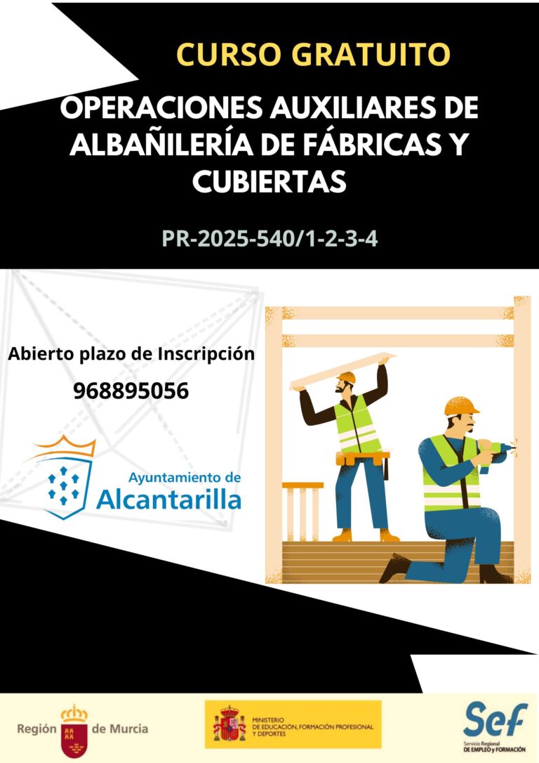CURSO GRATUITO "OPERACIONES AUXILIARES DE ALBAÑILERÍA DE FÁBRICAS Y CUBIERTAS"