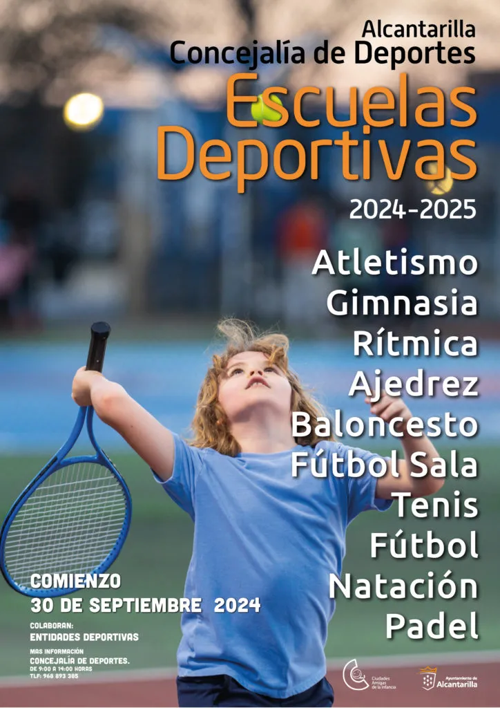 Entre la oferta, encontramos escuelas deportivas de atletismo, gimnasia rítmica, ajedrez, baloncesto, fútbol-sala, tenis, fútbol y pádel.