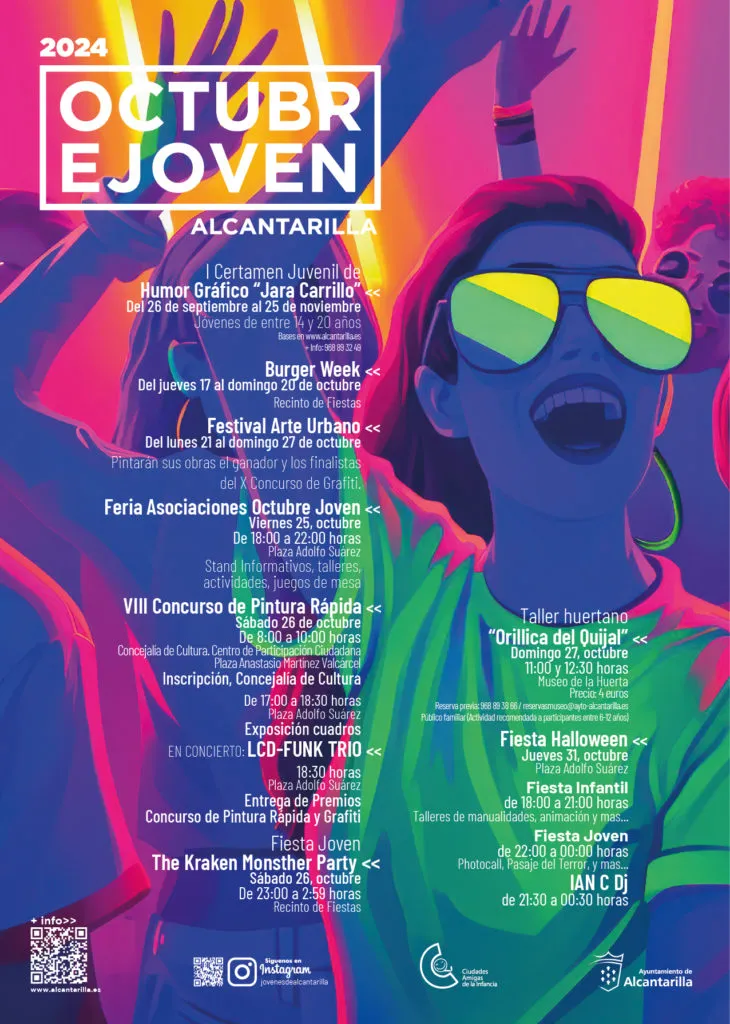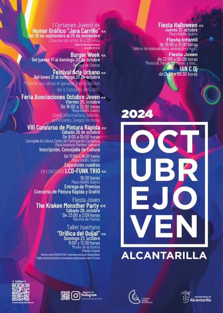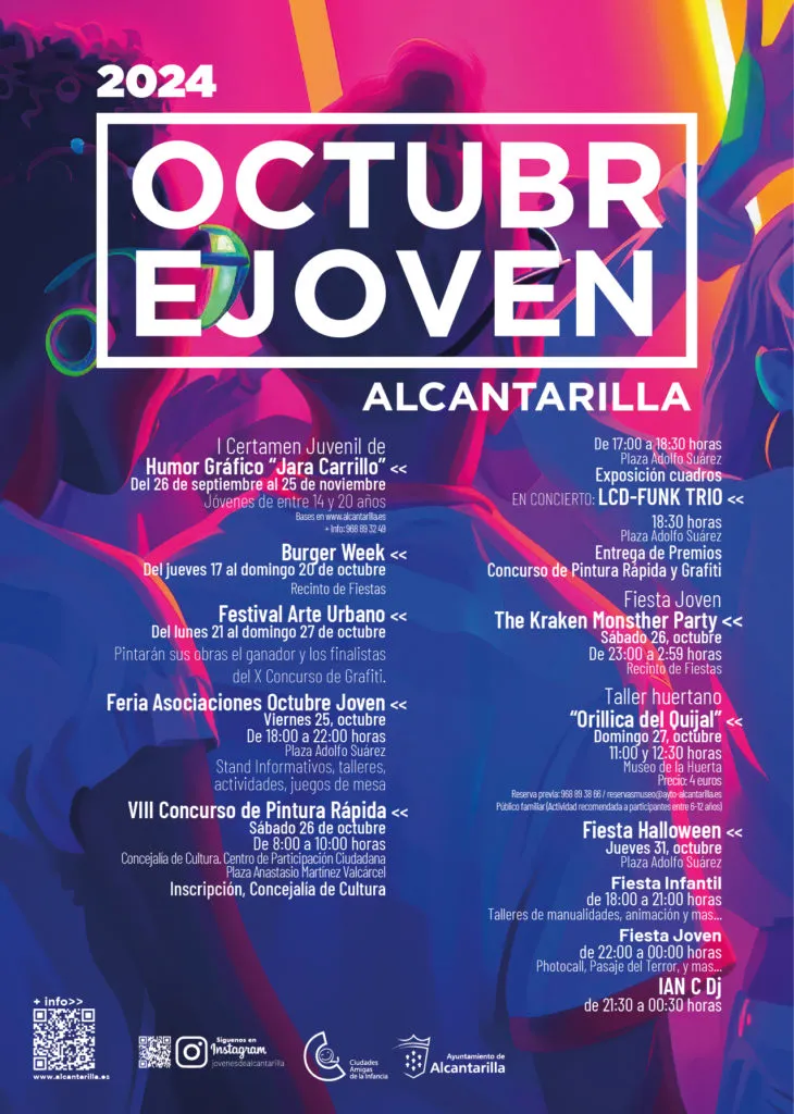 El Ayuntamiento de Alcantarilla, a través de la Concejalía de Educación, Cultura y Juventud, organiza el X Concurso de Grafiti Octubre Joven 2024 con el que se pretende promocionar y difundir las expresiones artísticas en nuestro municipio.
