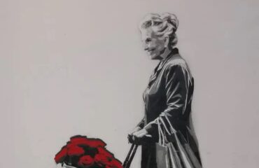 El artista urbano Alberto León pinta un mural en Alcantarilla para apoyar al comercio local