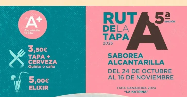 Un total de 25 bares y restaurantes de Alcantarilla participan desde mañana viernes hasta el próximo 16 de noviembre en la ruta gastronómica Saborea Alcantarilla, con precios únicos de tapa más bebida por 3,50 euros y cócteles por 5 euros.