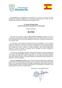 El alcalde de Alcantarilla, Joaquín Buendía, ha dictado un Bando animando a todos los vecinos de Alcantarilla a que “desde el día 1 de octubre engalanen sus balcones y ventanas con la bandera de España, como símbolo de unidad que a todos nos representa y que nos señala como nación soberana, democrática, plural e indivisible”.