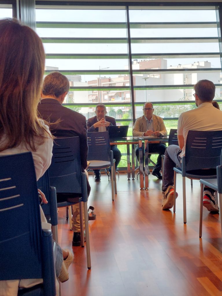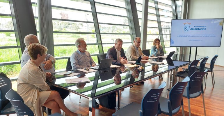 El alcalde, Joaquín Buendía, ha presidido hoy la primera reunión con las principales empresas instaladoras de telecomunicaciones, redes de datos y electricidad que operan en Alcantarilla para analizar el estado de los despliegues aéreos de telecomunicaciones repartidos por el municipio.