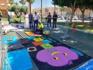 La zona infantil ahora cuenta con suelo de caucho renovado y más juegos, columpio, carrusel, canasta sueltabolas, casita nemo, caballito balancín y un juego de Rayuela.