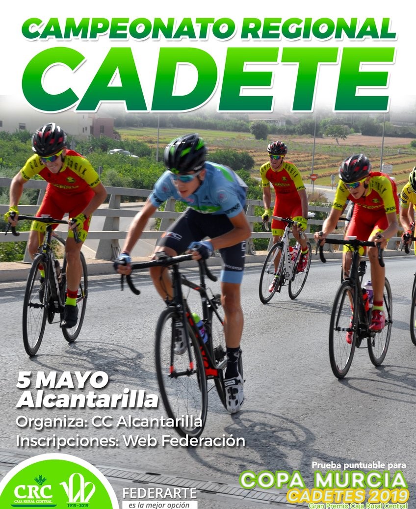 Este Campeonato Regional cadete de Ciclismo, nos dará en Alcantarilla al campeón cadete de línea de la Región de Murcia, en sus categorías de niños y niñas de edades entre 15 y 16 años. Además es puntuable para la copa Murcia Cadete Gran Premio Villa de Alcantarilla. La Oficina Permanente de ambas pruebas se encontrará en la plaza de la Constitución.