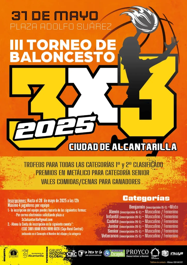 La inscripción del equipo puedes hacerla por correo electrónico solicitando plaza a 3x3alcantarilla@gmail.com