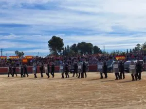 La Policía Nacional ha realizado hoy una exhibición de sus diferentes unidades en la plaza de toros portátil instalada en Alcantarilla, ante más de 1.400 escolares de los centros educativos del municipio, con motivo de la celebración de su bicentenario.