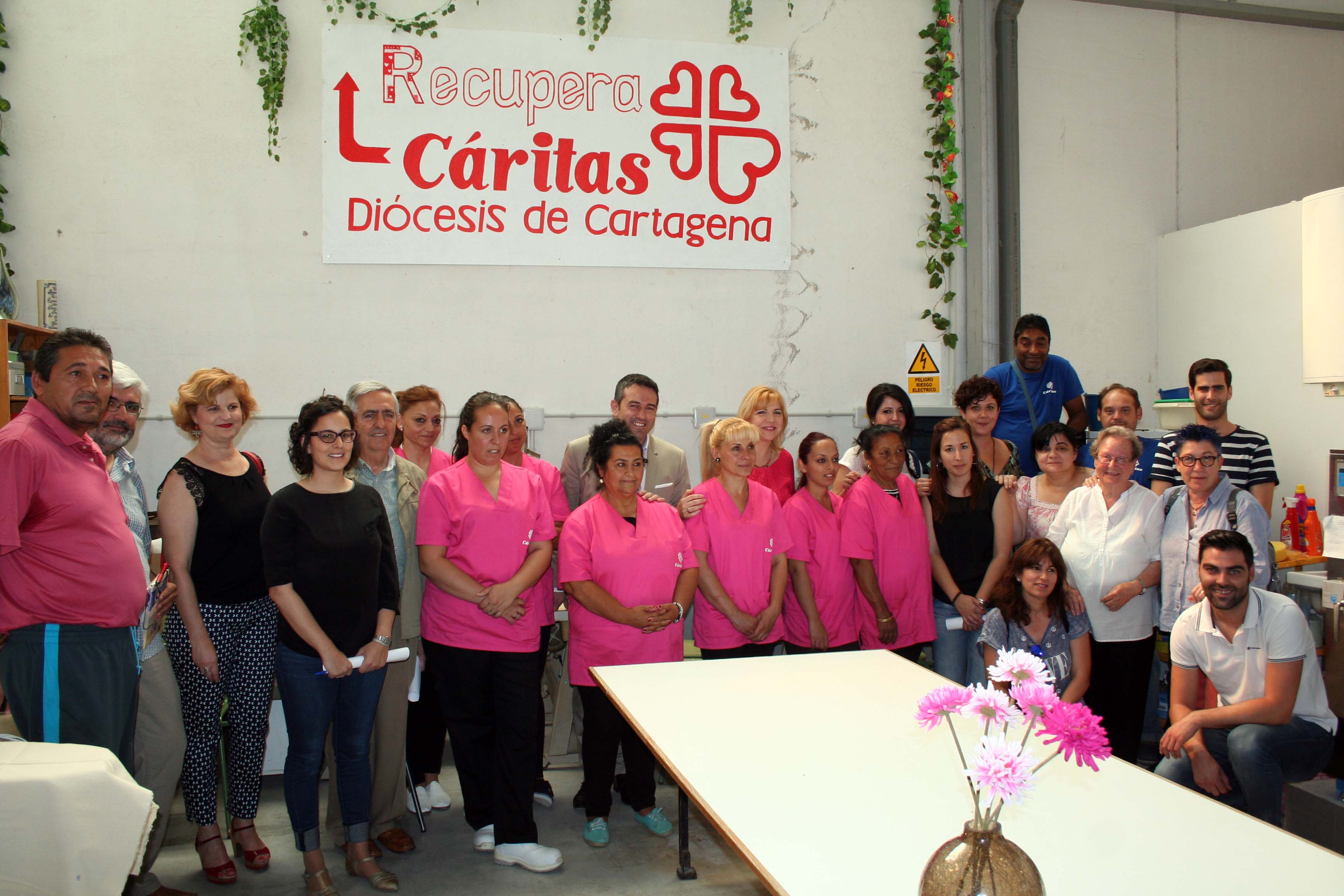La consejera ha visitado hoy dos proyectos sociales de Cáritas en el municipio, de los que se benefician más de 3.500 personas.