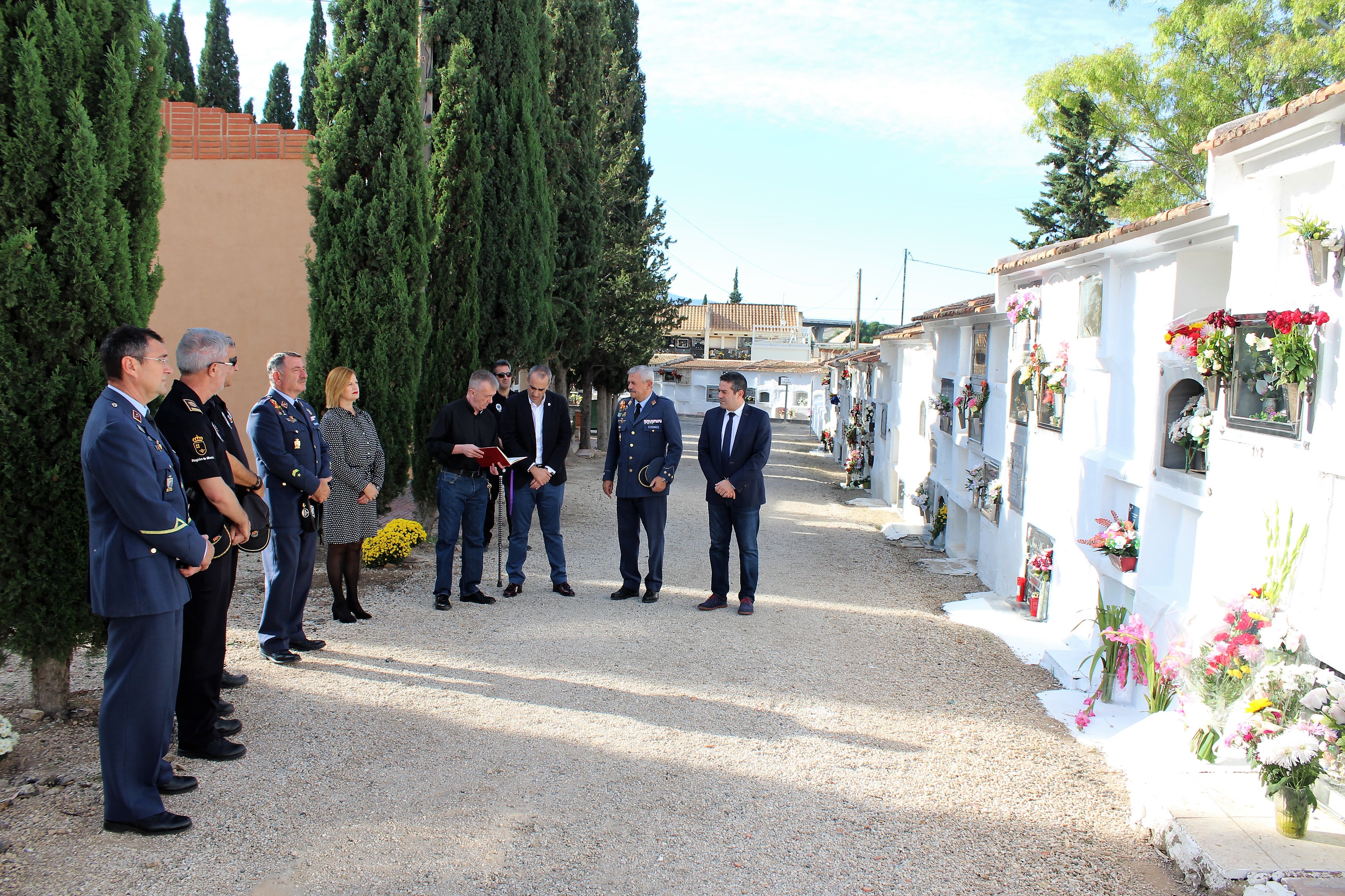 El alcalde de Alcantarilla, Joaquín Buendía, junto al Coronel Jefe de la Base Aérea de Alcantarilla y director de la Escuela Militar de Paracaidismo Méndez Parada, Francisco Javier Fernández, participó hoy en el acto homenaje que se celebra tradicionalmente en recuerdo de dos soldados enterrados en nichos de la Base Aérea del cementerio municipal de Alcantarilla