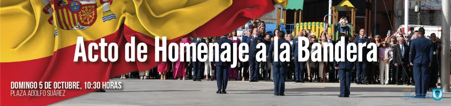 El próximo 5 de octubre de 2025, a las 10:20 h, la formación militar hará su entrada a la plaza Adolfo Suárez, como todos los años, y marcará el comienzo del acto oficial de Homenaje a la Bandera, que se ha establecido a las 10,30 h. Nueve militares desplegarán la enseña nacional de 54 metros cuadrados al son del Himno de España para después izarla a 25 metros de altura, en el mástil que preside la plaza Adolfo Suárez.