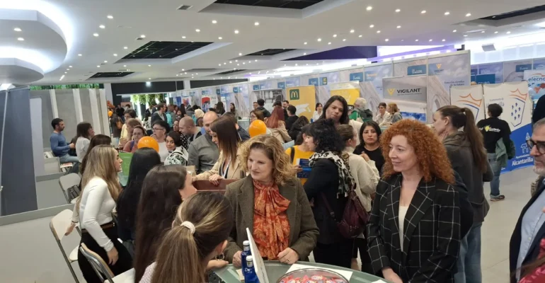 Un total de 43 empresas locales, nacionales e internacionales con presencia en la Región de Murcia atienden en los stands a las personas que buscan empleo