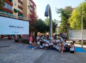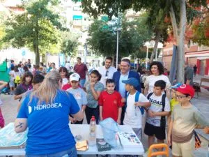 Hidrogea también ha instalado en la plaza Constitución una fuente de agua del grifo para darla a probar a las personas que se acercaban, además de una lona informativa sobre la seguridad y calidad del agua corriente, con el fin de promocionar su consumo y así reducir el uso de plásticos en los hábitos cotidianos.